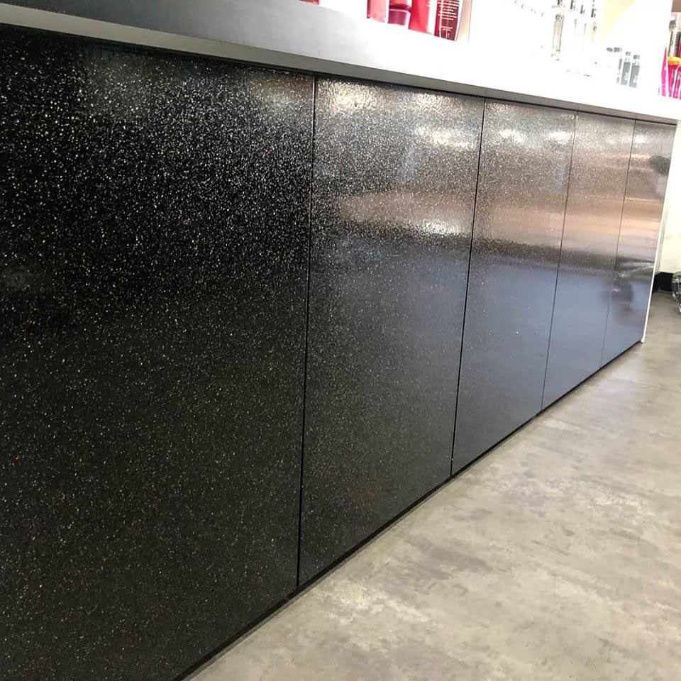 За защитным полимером Line-X сложился образ брутального покрытия, которым защищают свои машины «Настоящие Мужики». Мы решили разрушить этот стереотип и представить работу наших коллег из Line-X Canberra, которые использовали Line-X в качестве декоративного покрытия в салоне красоты. В Line-X были окрашены мебель, входные двери и несколько стен. Для придания эксклюзивного вида, в смесь были добавлены золотые, бронзовые и серебряные блестки. По заверениям заказчиков, в живую это выглядит просто фантастически, да к тому-же невероятно прочно! Ждем новых фотографий и видеоролика, чтобы по достоинству оценить всю эту красоту.