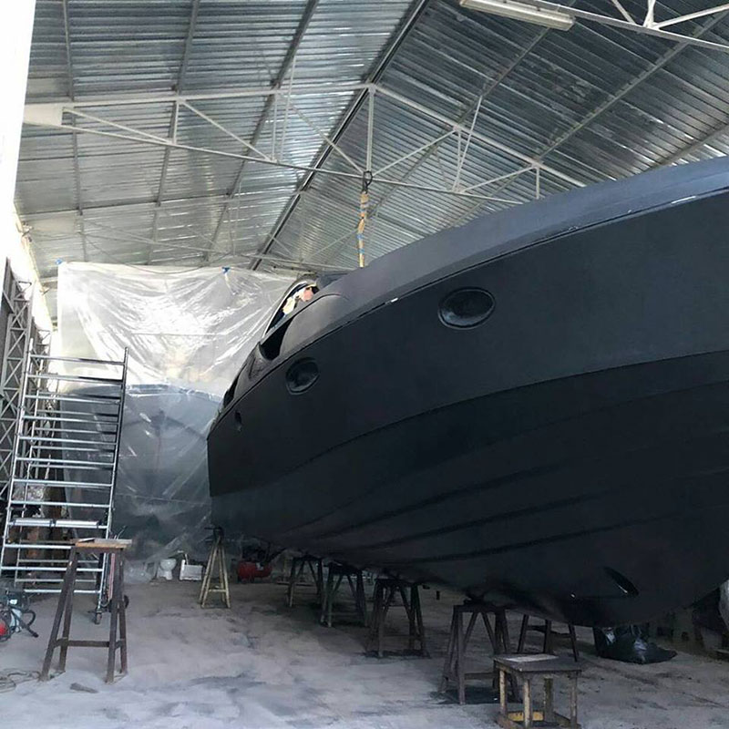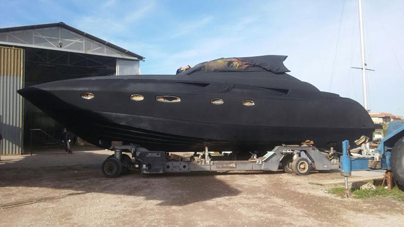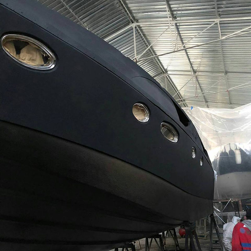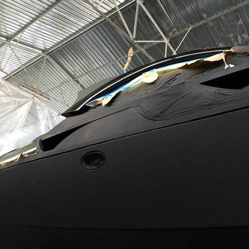 В процессе реализации проекта удалось достичь непревзойденной защиты корпуса лодки от механических повреждений и коррозии, значительно увеличить гидроизоляцию, улучшить акустический комфорт и безопасность передвижения по палубе (Line-X противодействует скольжению) ну и конечно создать неповторимый яркий образ «Черной яхты».