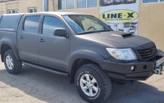 Если к нам приехал автомобиль, то мы его разберем, зачистим от старой краски, удалим очаги ржавчины и покрасим защитным полимерным покрытием Line-X. Наша миссия защитить как можно больше автомобилей, ведь целый автомобиль, без вмятин, царапин и ржавчины – залог долгого счастья своего хозяина). В «полку» защищенных автомобилей прибыло, встречайте очередной внедорожник Toyota Hilux покрашенный в Line-X.