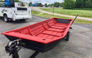 Line-X можно наносить на любые типы поверхностей, в том числе и алюминиевые, что наглядно демонтирует эта работа. Лодка за время эксплуатации практически пришла в негодность и утратила свой первоначальный внешний вид. В процессе ремонта, была восстановлена целостность и геометрия корпуса лодки, после чего его зачистили и окрасили защитным покрытием Line-X. Покрытие Line-X надежно защитит корпус лодки от дальнейших механических повреждений и обеспечит дополнительную гидроизоляцию. Кроме этого, покрытие Line-X приятно на ощупь и противодействует скольжению, даже при обильном намокание. Фото: Line-X Decatur Customs