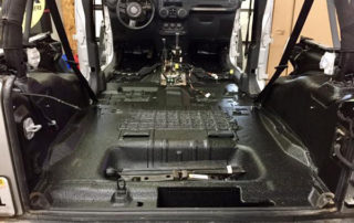 На пол салона Джипа нанесли слой защитного покрытия Line-X. Таким образом удалось добиться 100% гидроизоляции сохранив в рабочем состоянии все технологические отверстия, избавиться от избыточной влажности и неприятного запаха в салоне, а кузов автомобиля надежно защитить от возможной коррозии. Фото: Line-X Decatur Customs