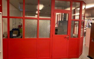 За несколько лет эксплуатации межкомнатные перегородки в столовой больницы были повреждены тележками для развозки обедов. Металлические элементы, лишившиеся лакокрасочного покрытия, стали ржаветь, быстро теряя презентабельный внешний вид. Решением проблемы стала окраска межкомнатных перегородок и дверей защитным полимерным покрытием Line-X. Такое решение позволило оперативно и не на долго прекращая работу столовой, восстановить целостность и внешний вид помещения, надежно и надолго защитив металлические перегородки от механических повреждении и коррозии. Так же стоит отметить, что защитное полимерное покрытие Line-X – разрешено для использования внутри жилых помещений, так как не содержит вредных летучих соединений, является экологически чистым и пожаробезопасным. [...]