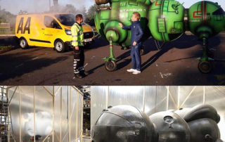 Пенопластовая модель космического корабля «Звездный Жук 1» для парка аттракционов в Восточном Лондоне, готов к эксплуатации. За защиту от внешних воздействий (механических повреждений, действий вандалов и погодных явлений) отвечает полимерное покрытие Line-X. Фото: Line-X West London