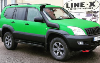 Если Вам приелись серые будни и серые автомобили, если душа хочет праздника для себя и окружающих, окрасьте автомобиль ярким защитным покрытием Line-X и дарите хорошее настроение всем вокруг, без страха за кузов автомобиля. Нужны примеры? Пожалуйста: буквально на днях, мы воплотили в жизнь заветное желание владельца Toyota Prado 120. Несколькими взмахами пульверизатора превратили серый внедорожник в настоящий шоустопер. Яркий, красивый и защищенный.
