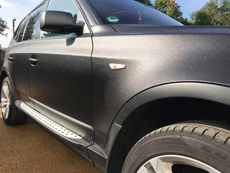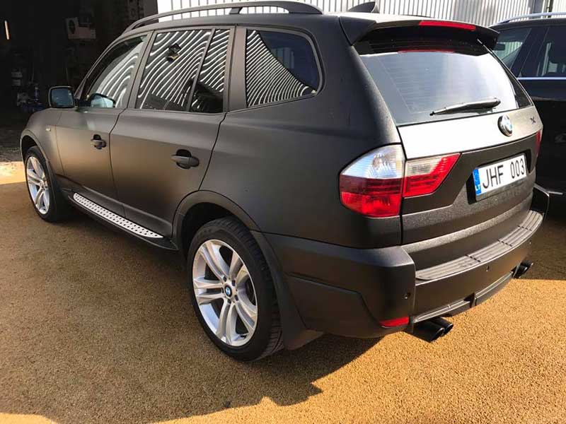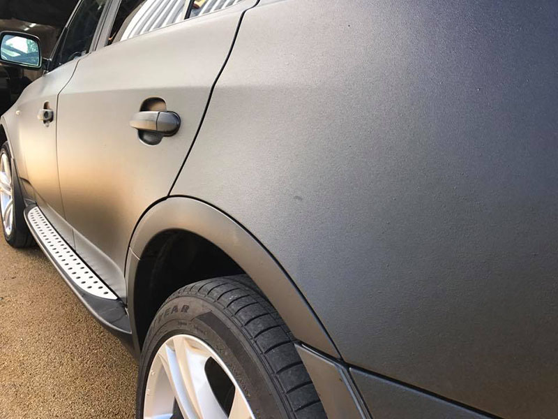 Окраска кроссовера BMW X5 защитным полимерным покрытием Line-Х Ultra черного цвета.