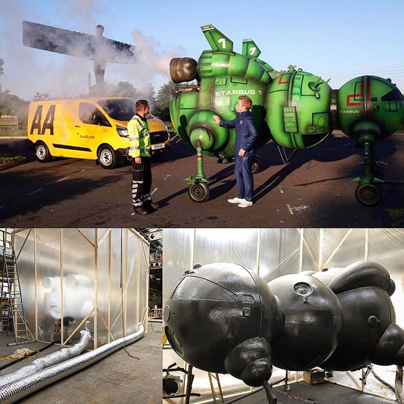 Пенопластовая модель космического корабля «Звездный Жук 1» для парка аттракционов в Восточном Лондоне, готов к эксплуатации. За защиту от внешних воздействий (механических повреждений, действий вандалов и погодных явлений) отвечает полимерное покрытие Line-X. Фото: Line-X West London