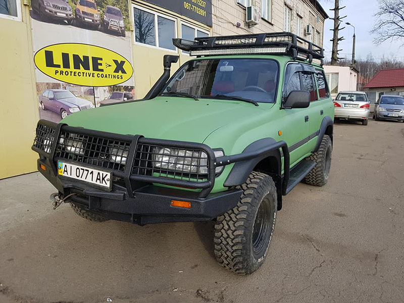 Быстрый износ покрытия Raptor привел к преждевременной потере «товарного вида» Toyota Land Cruiser 80 и началу образования очагов коррозии на кузове автомобиля. Пришлось приложить не мало усилий, чтобы подготовить Крузак к покраске защитным полимерным покрытием Line-X. Кузов – зачистили от остатков Раптора, удалили следы коррозии, поставили расширители крыльев, заменили лобовое стекло. После чего весь кузов, [...]