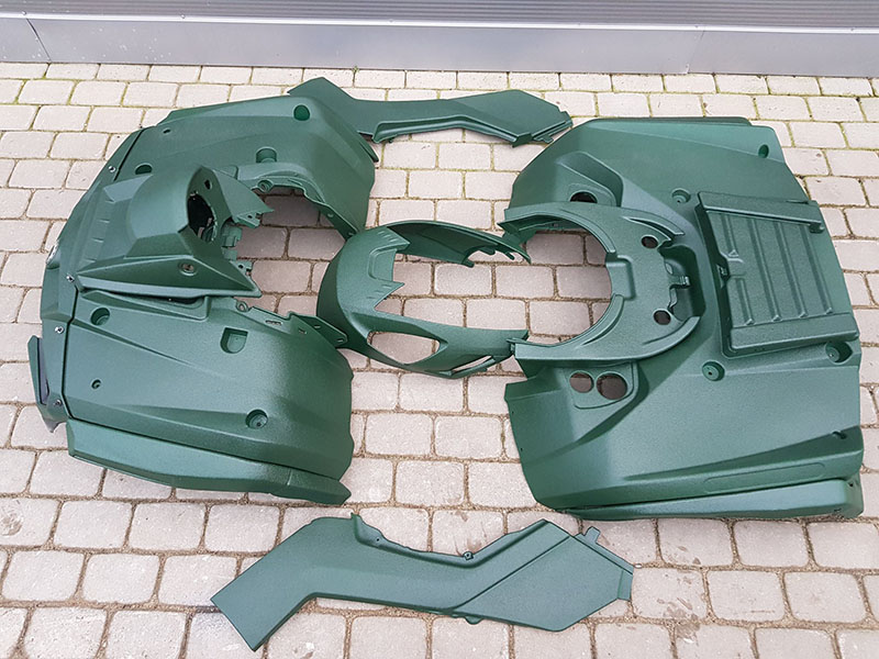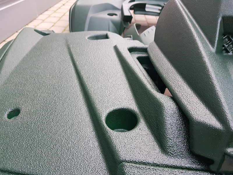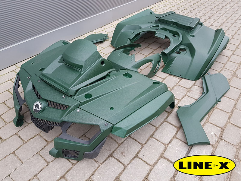 Аксессуары квадроцикла, окрашенные защитным полимерным покрытием Line-X, очень сильно напоминают набор деталек из конструктора для сборки модели автомобиля.