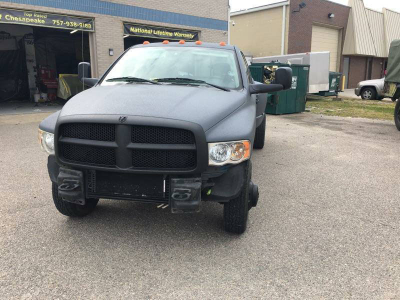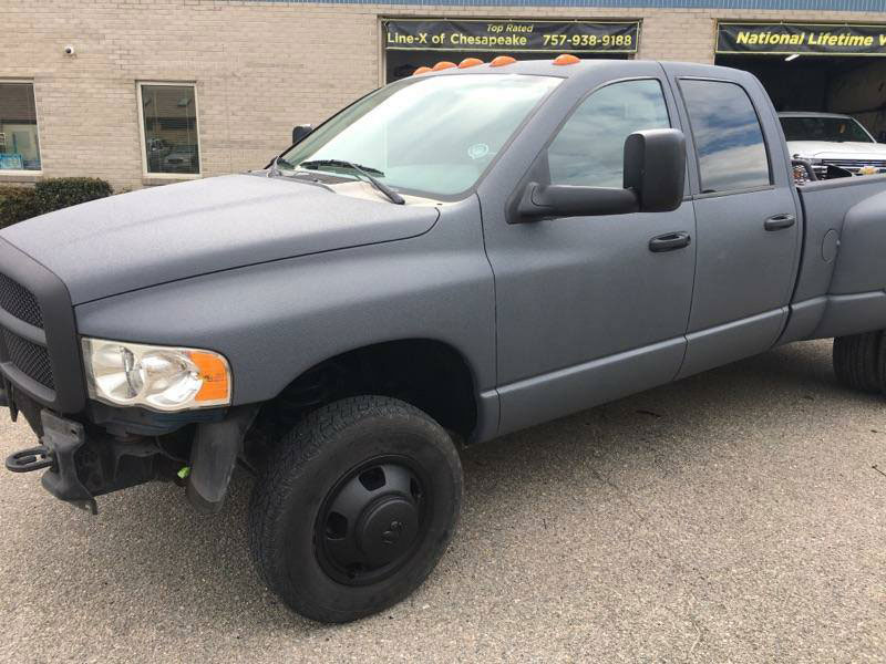 Выпускаемая концерном Крайслер с 1981 года, серия Dodge Ram сыскала заслуженную популярность среди покупателей рамных пикапов, благодаря своей мощности, высокой грузоподъемности, отличному комфорту и неплохой управляемости. Dodge Ram 5500 относится к последнему поколению пикапов, он оснащен усиленной рамой и задними сдвоенными колесами, что позволяет перевозить грузы массой до 2,5 тон. Эти машины активно эксплуатируются по прямому назначению, что приводит к ускоренному износу защитного покрытия грузового отделения и повреждению лакокрасочного покрытия кузова. Один из таких пикапов и привезли для ремонта в компанию Line-X of Chesapeake. С целью продления срока службы автомобиля и повышения уровня защиты от механических повреждений, было принято решение использовать технологию Line-X. В процессе работы весь кузов пикапа Dodge Ram 5500 и грузовой отсек багажника, были окрашены защитным полимерным покрытием Line-X серого и черного цвета.