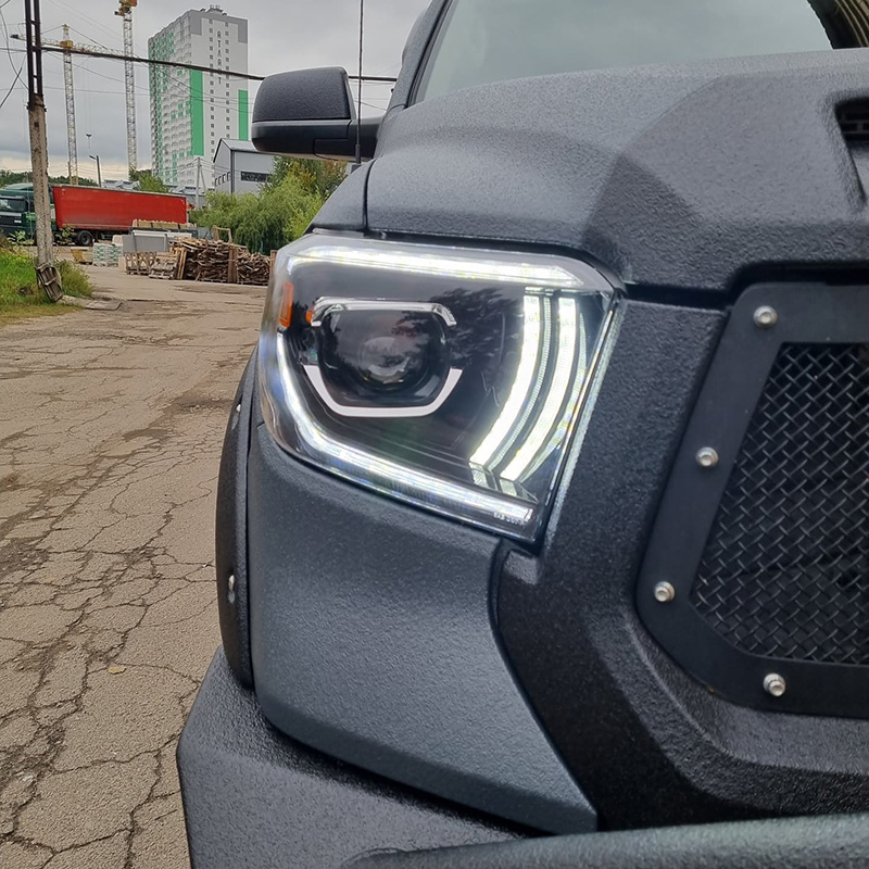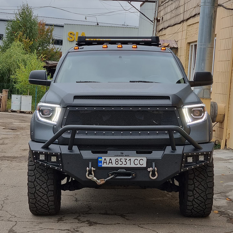 Недавно мы подробно писали о том, как мы проводили операцию по ремонту защитного покрытия кузова внедорожника Toyota Tundra Devolro, в результате которого было удалено поврежденное покрытие из жидкой резины и нанесено надежное покрытие бренда Line-X. Так вот, на тех фотографиях не хватало одной немаловажной детали, а именно новой передней и задней оптики, после установки которой автомобиль стал выглядеть еще более круто. Оцените, что у нас получилось!