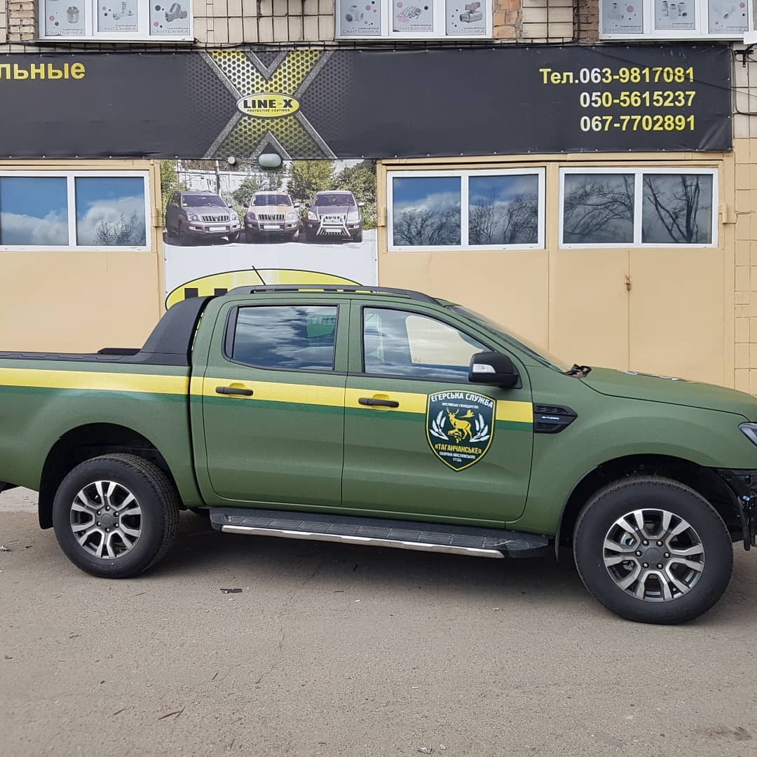 Мы гордимся возможностью сотрудничества с егерской службой одного из крупнейших охотничьих хозяйств черкасской области «Таганчанское». Так по его заказу были покрашены защитным покрытием Line-X два Форда Ranger. Теперь егеря могут еще более эффективно заниматься охраной охотничьих угодий, зная, что кузов автомобиля находится под надежной защитой покрытия Line-X и ему не страшны удары и царапины веток деревьев или кустов.