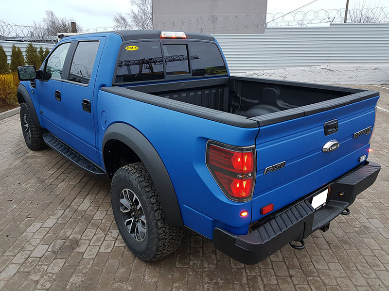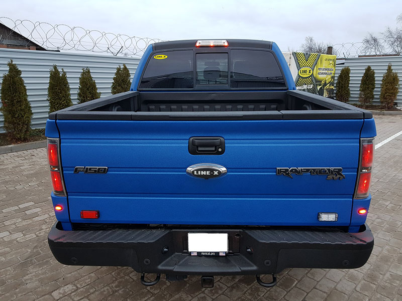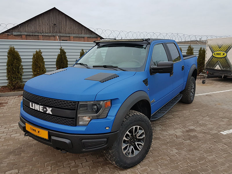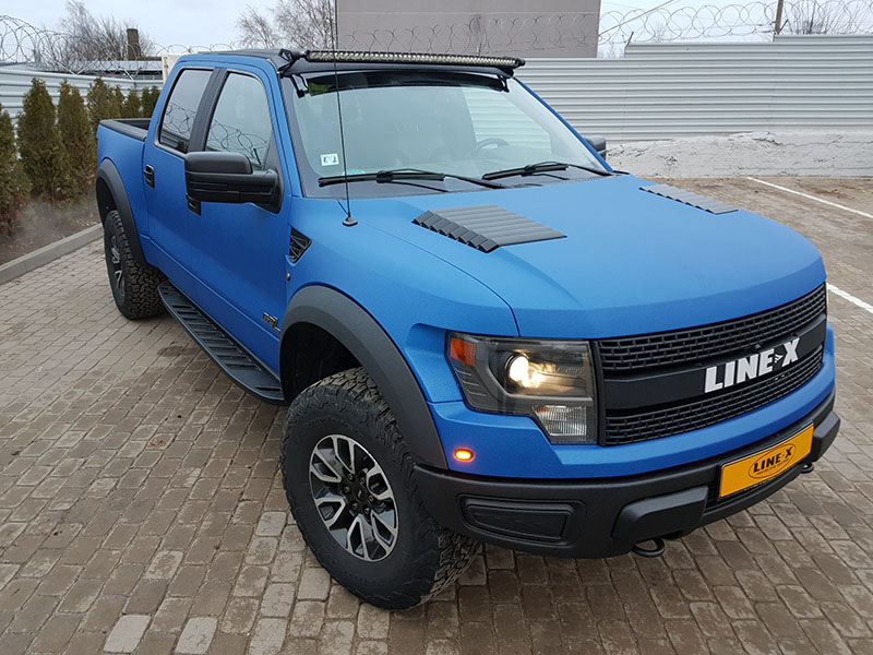 Внедорожный пикап Ford Raptor значительно посвежел после окраски защитным полимерным покрытием Line-X. С таким покрытием кузова он будет выглядеть городским франтом на любом бездорожье и при этом не опасаясь «порвать или запачкать свой модный костюм».