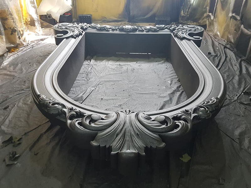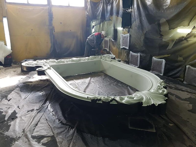 Расширяем горизонты применения защитного покрытия Line-X. В этот раз красим в Line-X XS-100 декоративное обрамление окон для гостиничного комплекса с последующей отделкой откосов медью и нанесением позолоты.