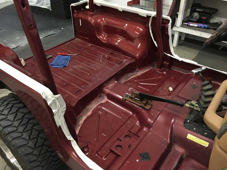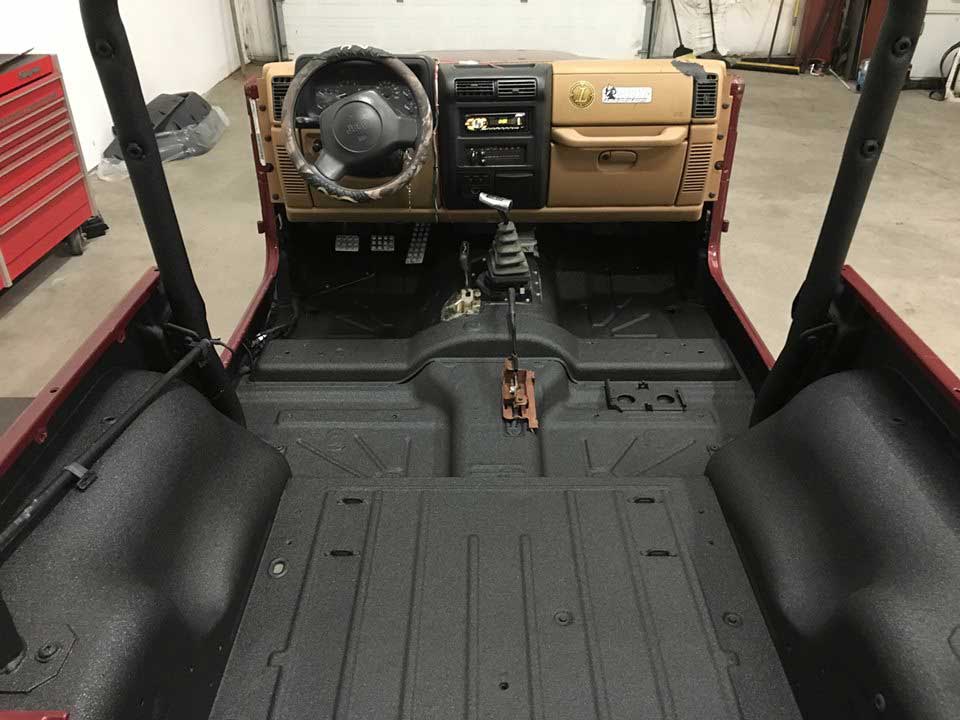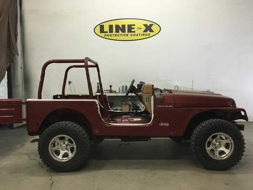 На фотографиях приведена работа компании LINE-X of Winchester по антикорозийной обработке кузова внедорожника Jeep Wrangler защитным полимерным покрытием Line-X.