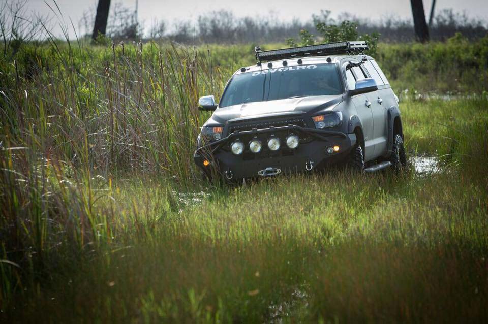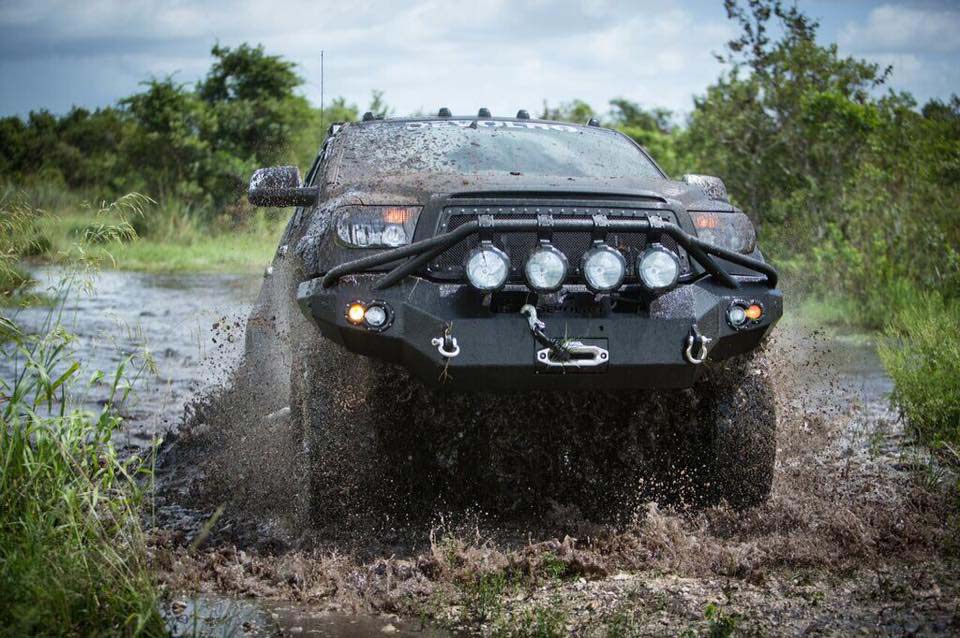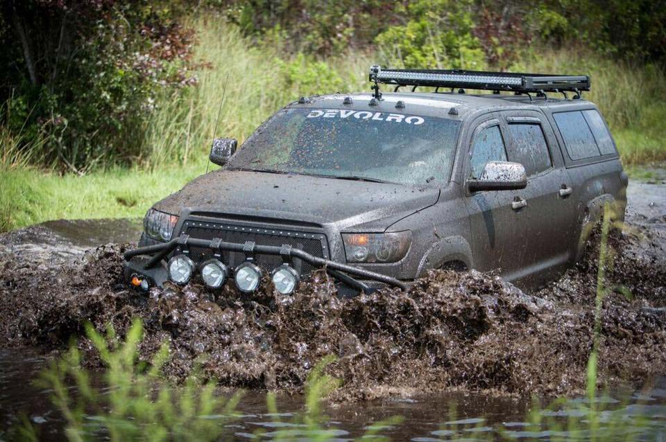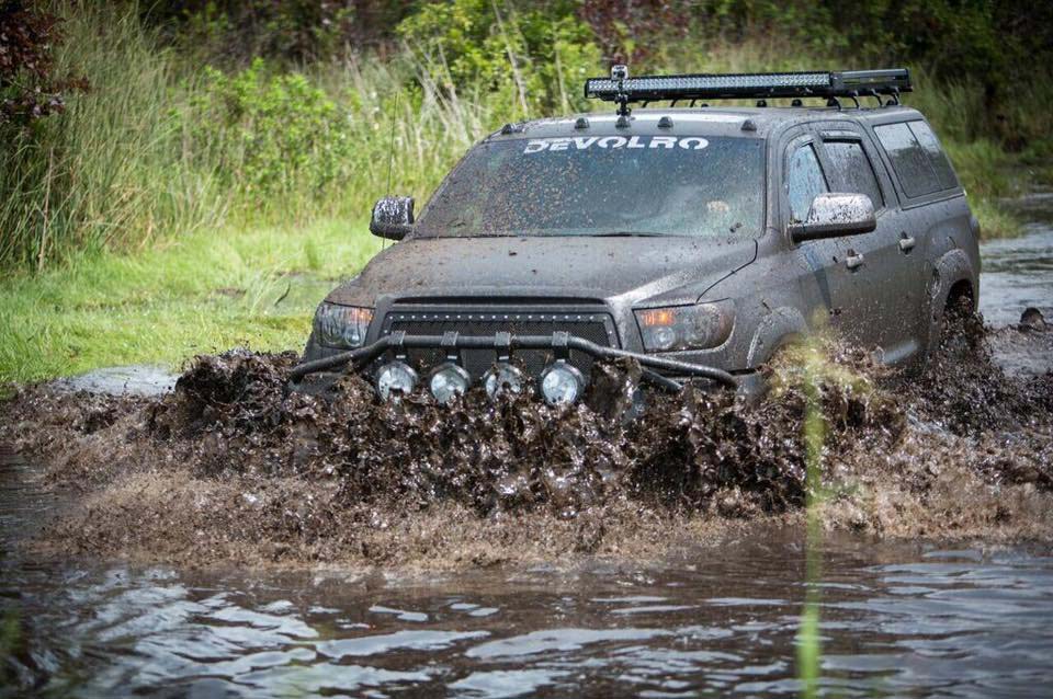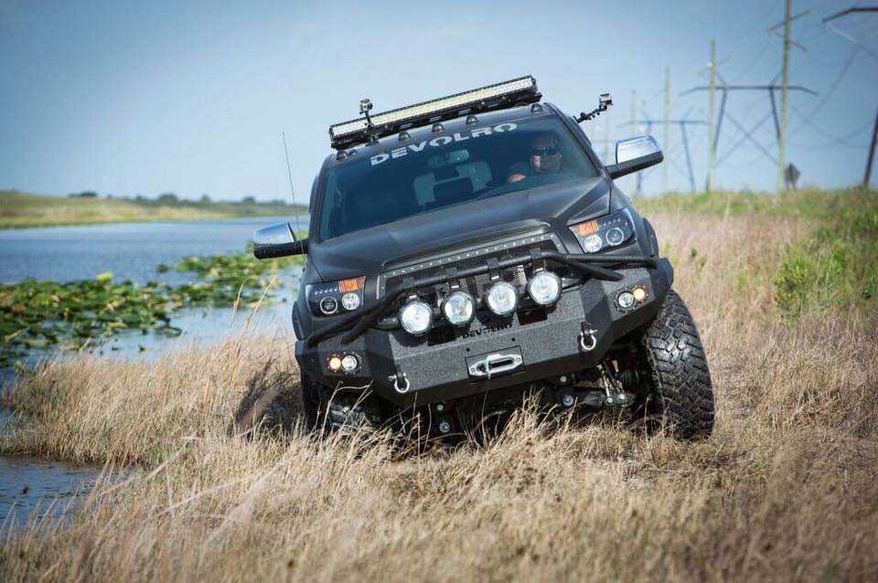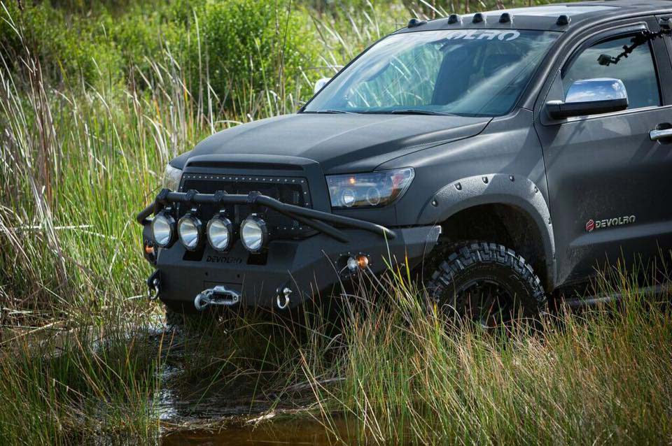 Защитное полимерное покрытие Line-X – грязи не боится! Это выражение иллюстрируют фотографии компании Devolro, на которых представлен базовый вариант тюнинга автомобиля Toyota Tundra, бампера и колесные арки которого покрыты полимерным защитным покрытием Line-X.