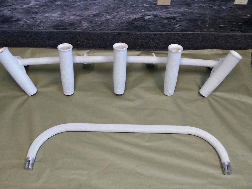 Воистину способам применения защитного полимерного покрытия Line-X нет границ. Сотрудник компании Line-X of Chesapeake опубликовал фотографии, на которых полимер Line-X напылили на держатели для удочек. Корпус держателей, обработанный Line-X, выглядит красиво и прослужит намного дольше, ведь Line-X надежно защитит его от механических повреждений и коррозии!