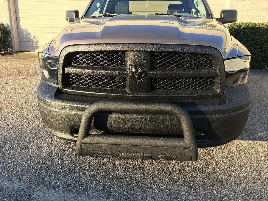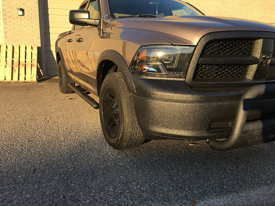 Автомобиль – как любимая девушка, постоянно требует внимания и подарков. Очередную порцию модных аксессуаров получил и этот Додж-пикап: силовые бампера, пороги, расширители колесных арок и решётку радиатора, заботливый хозяин окрасил защитным полимерным покрытием Line-X.