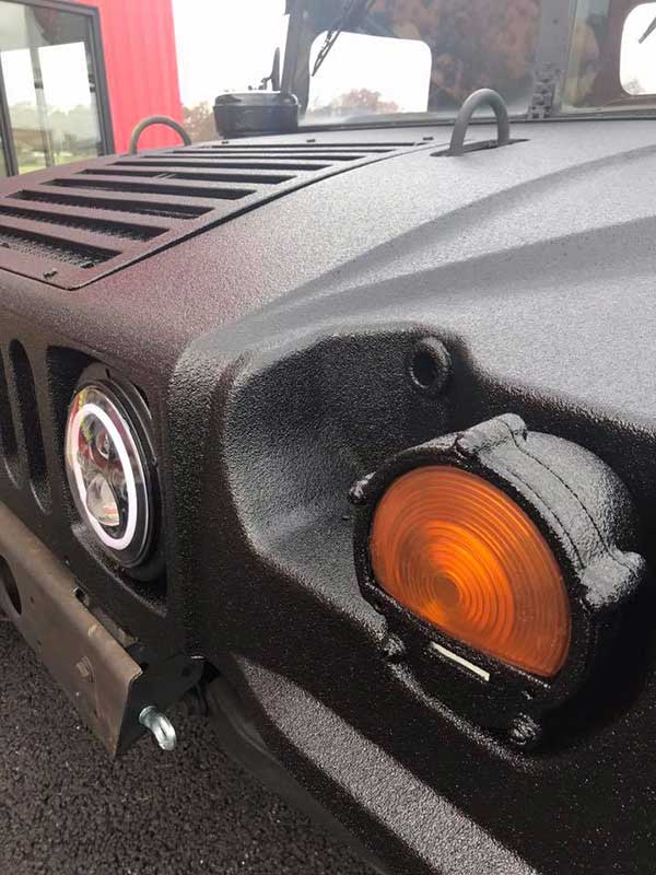 После демобилизации, кузов армейского внедорожника Humvee был полностью перекрашен полимерным покрытием Line-X для защиты от механических повреждений и коррозии.