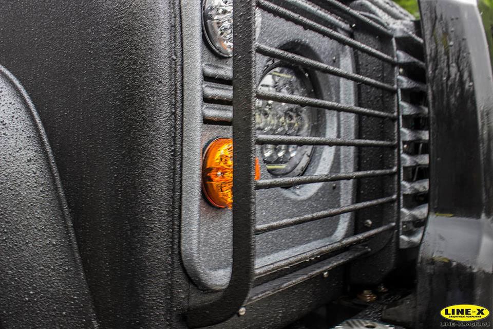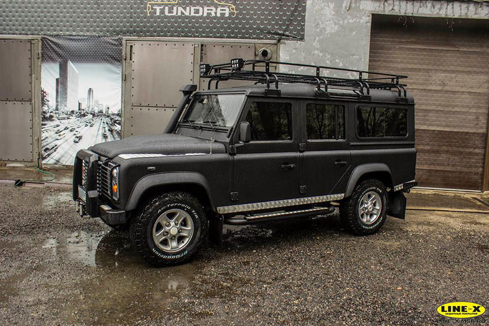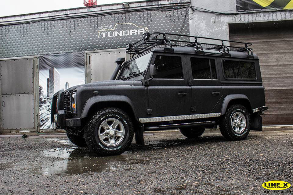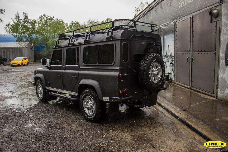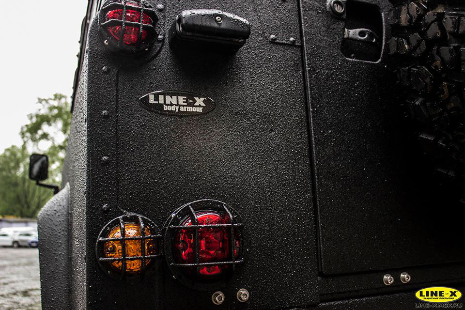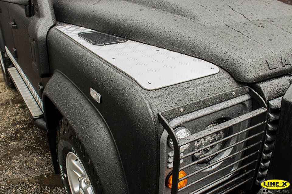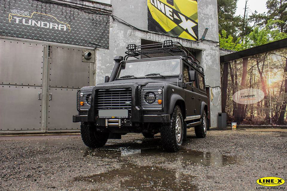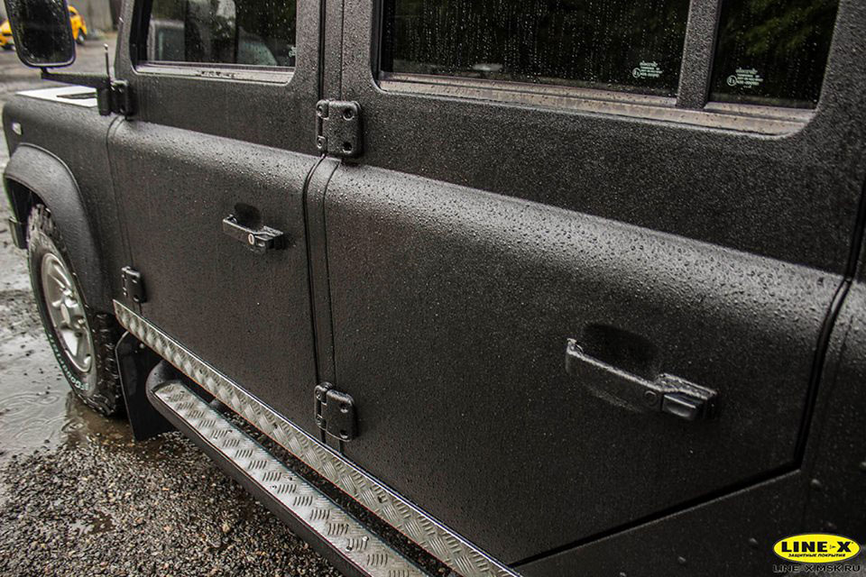 Очередной внедорожник Land Rover Defender обзавелся полимерной броней в тюнинговом-ателье Line-x MSK. Проливной дождь не испортил хорошего настроения хозяину автомобиля, а только подчеркнул еще одно полезное свойство защитного покрытия Line-X. Обратите внимание, как капли дождя не растекаясь, скатываются вниз по кузову. Благодаря уникальной внешней структуре и высокой степени гидрофобности полимерное покрытие Line-X защищает автомобиль не только от механических повреждений, но и от загрязнения, предотвращая налипания жидкой грязи и значительно облегчая мойку автомобиля.