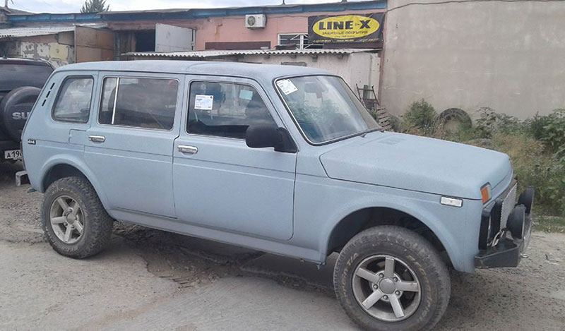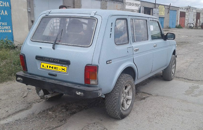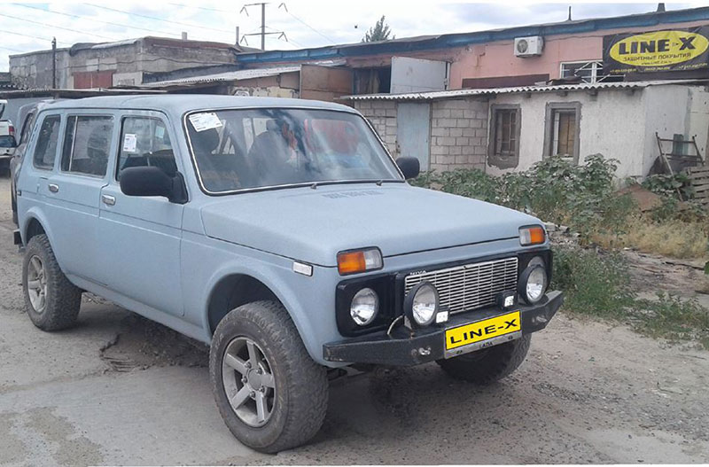 LADA 4×4 – обновленный автомобиль повышенной проходимости «Нива» (ВАЗ-2121) разработанный в советское время по заказу Минавтопрома для жителей сельской местности. Производится с 1977 года, данный экземпляр — 2006 года выпуска и кардинально отличается от предшественника увеличенной базой и полноразмерным кузовом на 5ть дверей. Несмотря на столь продолжительную жизнь на конвейере и развитие новых технологий, так и не удалось решить проблему низкой коррозийной стойкости кузова. Хозяева «Нив» борются с этой проблемой по разному, в нашем случае, весь кузов автомобиля был окрашен защитным полимерным покрытием Line-X, который замечательно противостоит механическим повреждения и не дает развиваться коррозии.