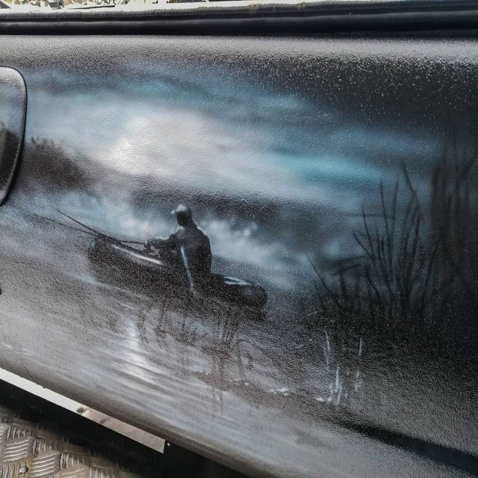 Специалисты компании Line-x msk закончили восстановление автомобиля после неудачного нанесения покрытия Raptor. В процессе работы кузов пикапа Mitsubishi L200 был зачищен от остатков Раптора и заново перекрашен полимерным защитным покрытием Line-X, поверх которого нанесли аэрографическим способом рисунок на тему рыбалки.