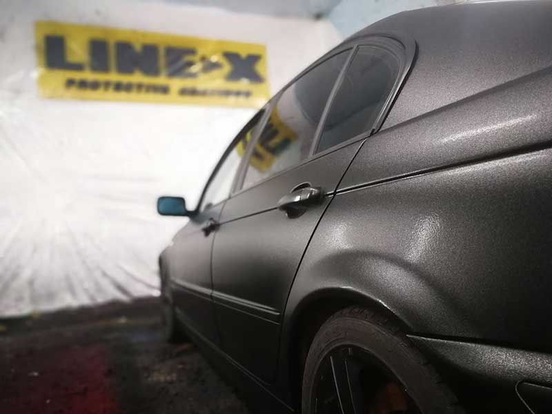 После обработки защитным полимерным покрытием Line-X Ultra старенькая «тройка» BMW E46 заиграла новыми красками! Ultra – последние поколение в линейке защитных покрытий Line-X, от предшественников оно отличается более тонким слоем напыления и меньшей зернистостью шагрени, что позволяет сохранив все защитные свойства, значительно уменьшит общий вес наносимого полимера. А еще Line-X Ultra прекрасно выглядит на спортивных купе и седанах!