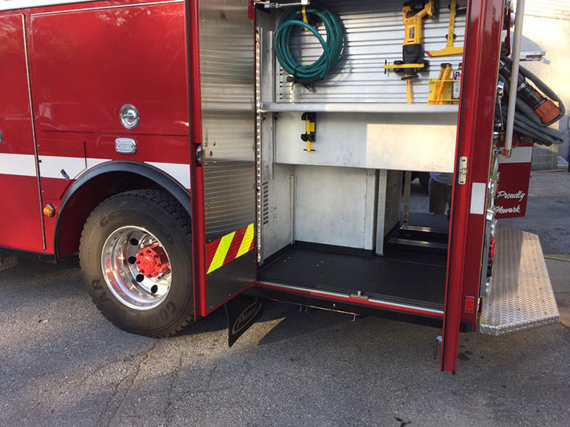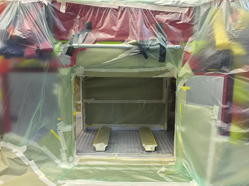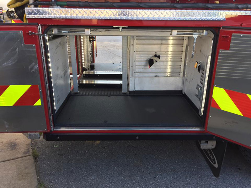 Окрасили отсек для хранения инвентаря в пожарной машины защитным покрытием Line-X. Теперь тяжелые огнетушители, кислородные болоны и стволы пожарных шлангов, не будут царапать пол машины.