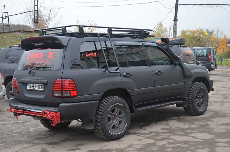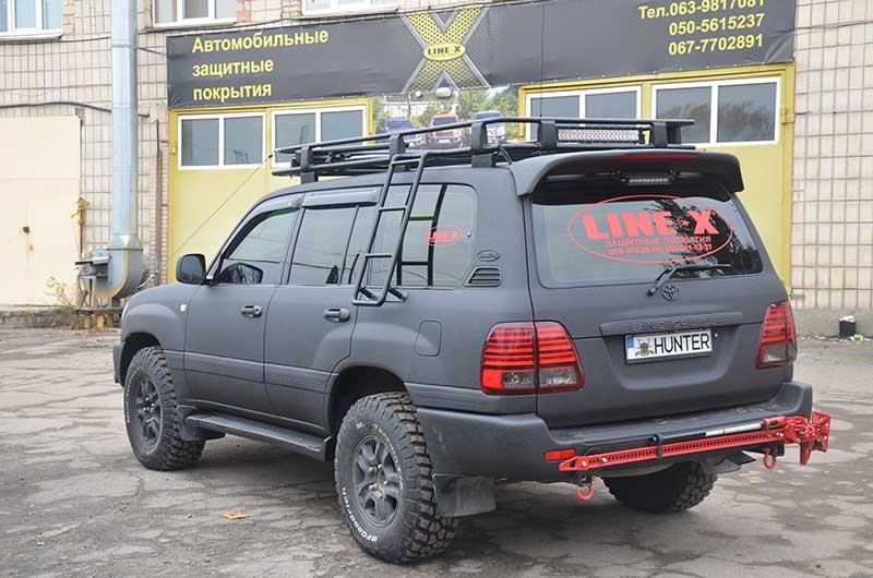 К нам в «Гранд Протект» приехал заслуженный «Охотник Украины» — Land Cruiser 100 Hunter, судя по состоянию кузова, во время охотничьего сезона, внедорожник ни дня не простоял в гараже, а ездил по полям и лесам страны оправдывая свое название. От такой напряженной эксплуатации автомобиля во многих местах было повреждено лакокрасочное покрытие, что привело к образованию множественных очагов коррозии. Так что, прежде чем приступить к окраске пришлось повозиться с подготовкой кузова. В конечном итоге полученный результат оправдал все затраченные усилия. После удаления ржавчины и окраски кузова и навесных аксессуаров защитным полимерным покрытием Line-X, хозяин «Охотника» сможет спокойно продолжать заниматься своим любимым хобби, надолго позабыв о сколах, царапинах и коррозии.