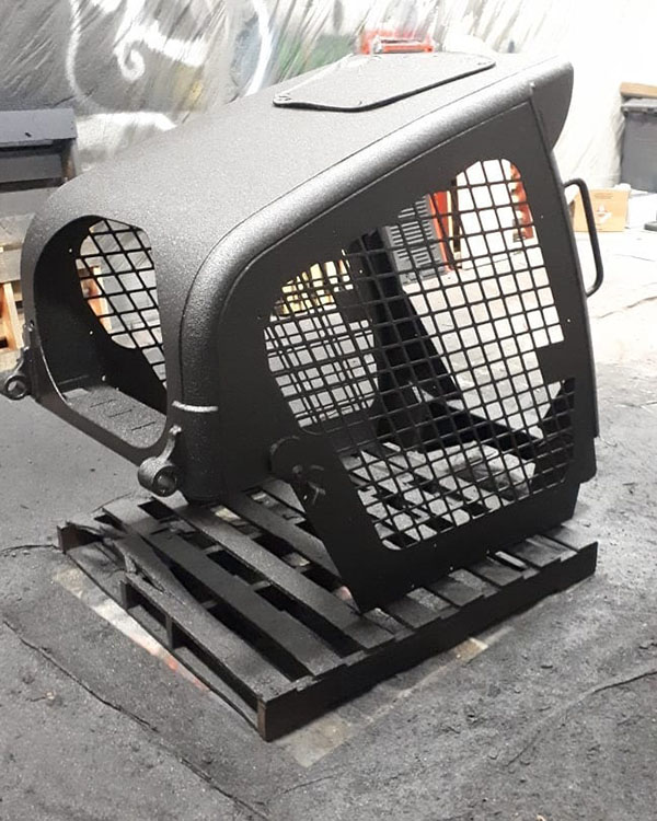 Извините за тавтологию, но полимерное покрытие Line-X можно использовать, как защиту для защиты. Line-X идеально подходит для защиты навесных защитных элементов автотранспорта от механических повреждений и коррозии. Им можно окрашивать силовые бампера, кенгурятники, накладки на арки колес и защитные пороги автомобилей, ну или, как в этом случае кабину погрузчика «Бобкета».