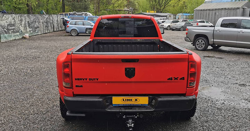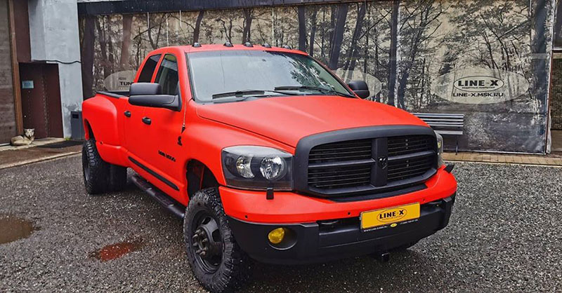 Восстановление изрядно прохудившегося кузова 14ти летнего DODGE RAM 3500. Вместо обычного ЛКП, для более надежной защиты от механических повреждений и коррозии, было использовано полимерное покрытие Line-X.
