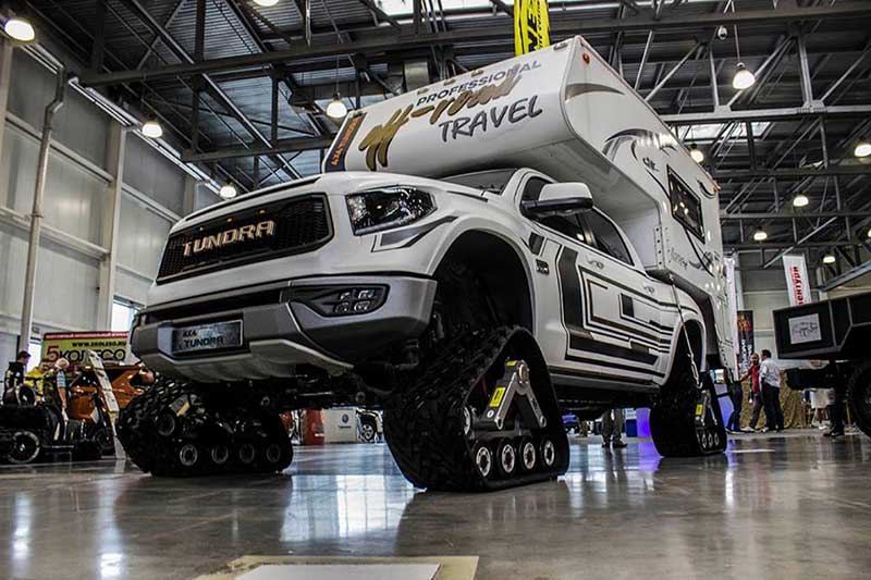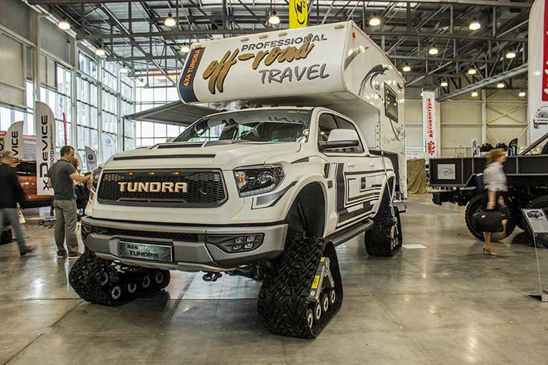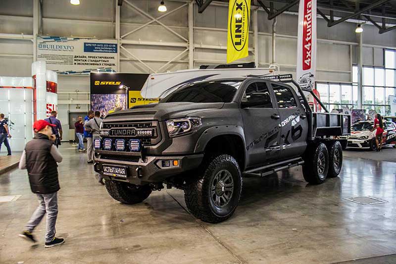 Компания Line-X MSK представила на выставке Moscow Off-Road Show два новых концептуальных проекта повышенной проходимости на базе автомобиля Toyota Tundra. Первый — это полноприводный шестиколесный пикап, второй – «гусеничный тягач» с кемпером и широкими композитными крыльями. Объединяющая черта обоих проектов состоит в том, что кузова машин окрашены полимерным покрытием Line-X, для защиты от механических повреждений и коррозии.