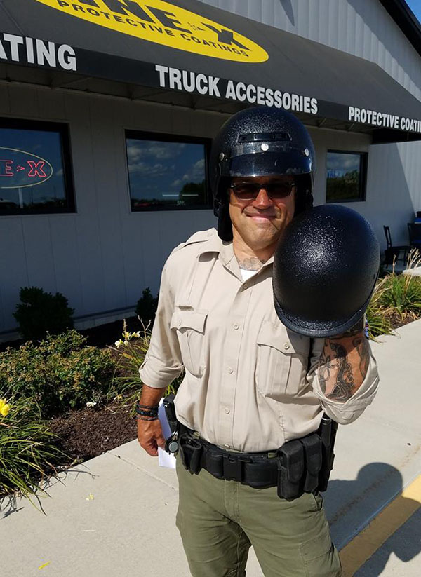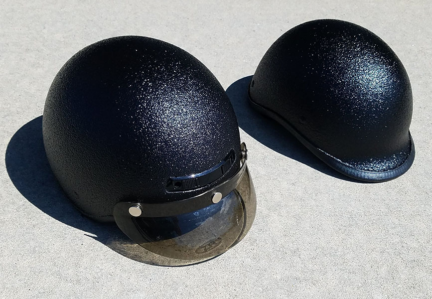 Правда в нашем случае, защищен оказался только шлем и только от ударов сколов и царапин. Сотрудников отделения полиции устал от царапин на мотошлеме и окрасил его защитным полимерным покрытием Line-X!