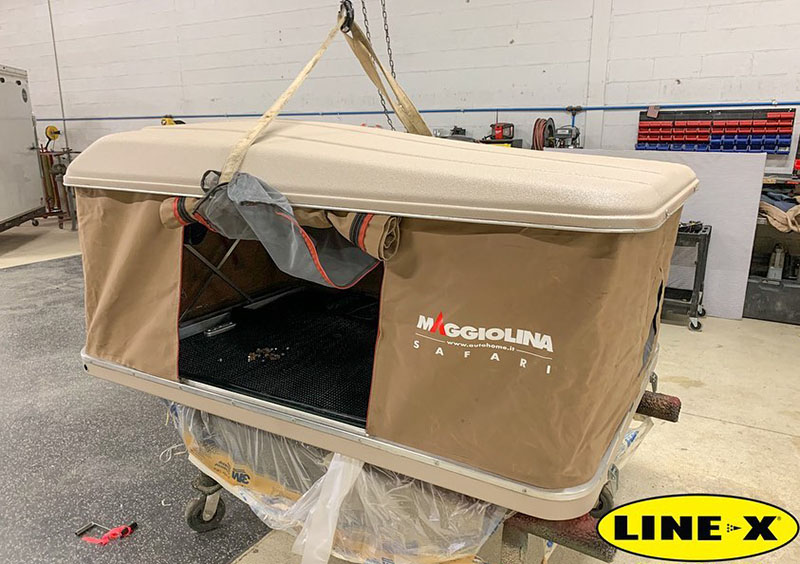 Каких только способов применения не находят современные креативные люди для защитного покрытия Line-X. Недавно нам попалась на глаза работа американской компании LINEX of Odessa по защите раскладной палатки для крепления на крышу автомобиля. Они обработали полимерным покрытием Line-X верхнюю и нижнюю половинку кофра палатки, и это очень правильное решение! Створки кофра испытывают во время эксплуатации большие нагрузки, а покрытие Line-X способно значительно увеличить их прочность и гидроизоляцию.