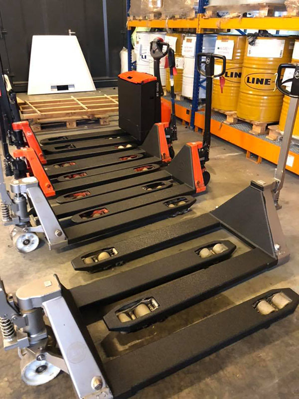 Если восстанавливать целостность лакокрасочного покрытия старых гидравлических тележек и погрузчиков при помощи защитного покрытия Line-X – они прослужат намного дольше. А так ка Line-X обладает мягкой шершавой структурой, то еще и уменьшится шанс повредить вилами роклы перевозимый груз.