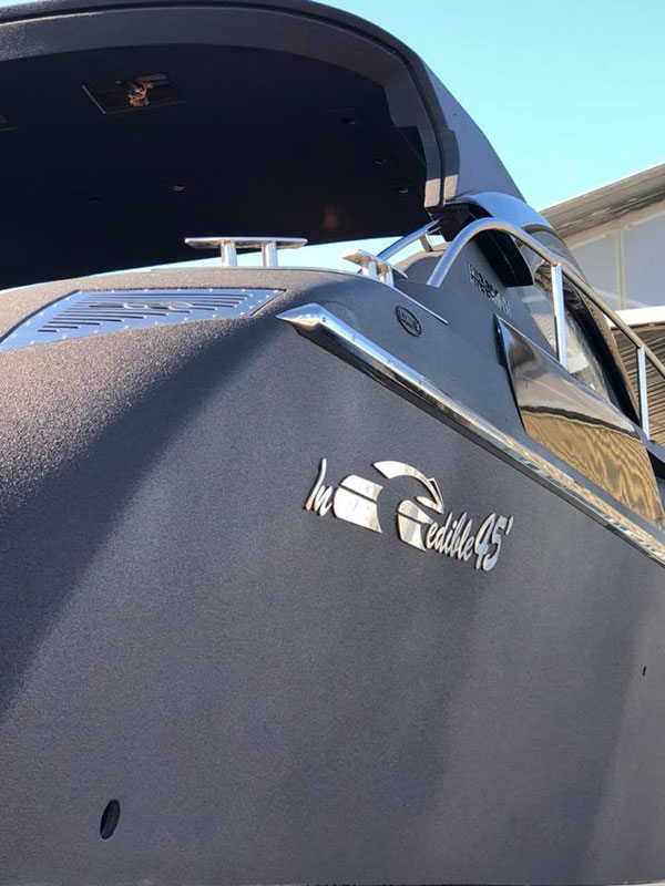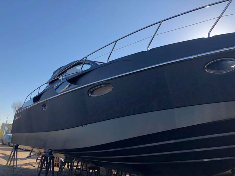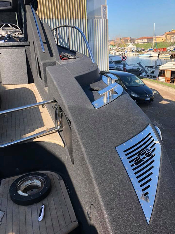 В продолжение публикации про «Черную яхту», выкладываем фотографии уже готового проекта.  Весь корпус яхты, включая подводную часть, палубу и надстройку окрасили защитным полимерным покрытием Line-X, установили все навесные аксессуары: ограждения, решетки, кнехты, настил, стекла иллюминаторов. На наш взгляд яхта выглядит просто прекрасно!