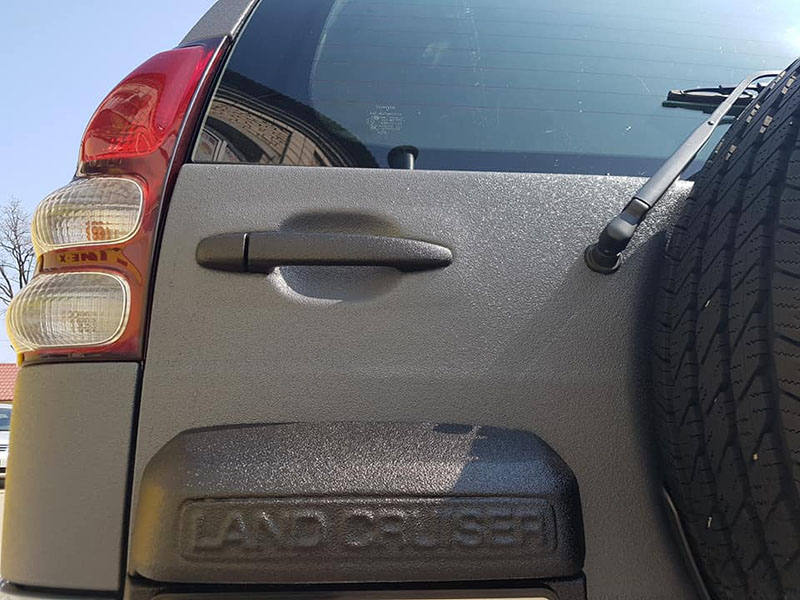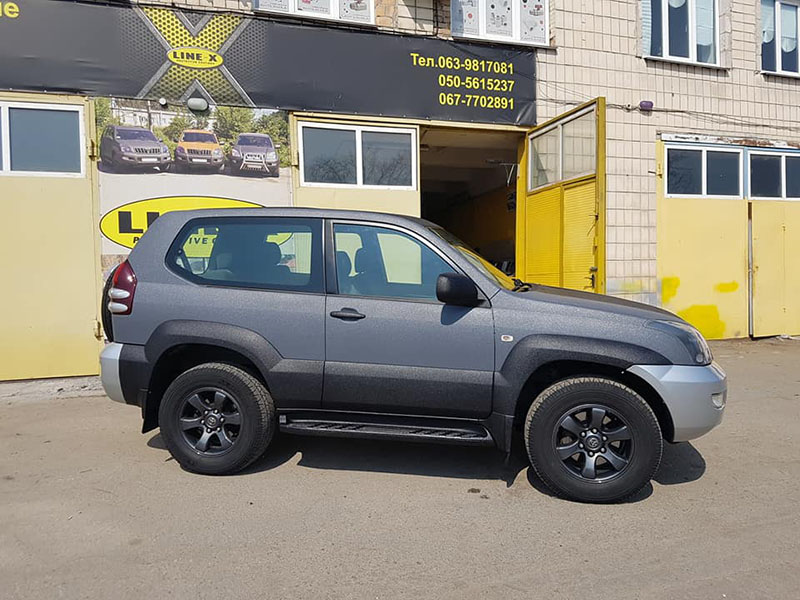 Редкий в наших краях трехдверный Прадик (Toyota Prado 3D) был полностью окрашен полимерным защитным покрытием Line-X в два цвета. Общую картину немного портит отсутствие силовых бамперов, которые не успели подвести к сроку покраски, их поставим немного позже. До полной сдачи проекта заказчику, Прадика ждет лифт подвески, новая агрессивная резина, тонировка стекол, установка музыки и сигнализации.