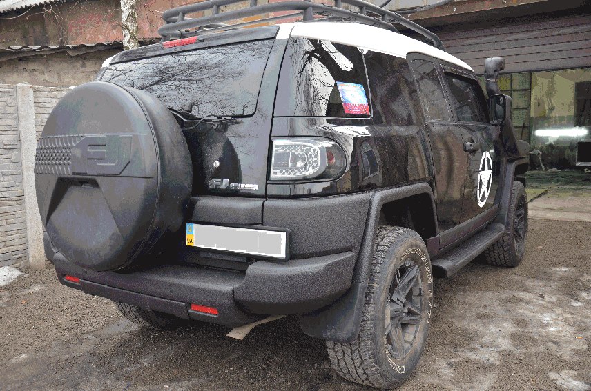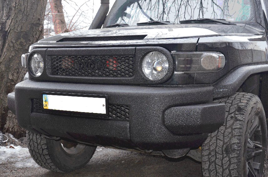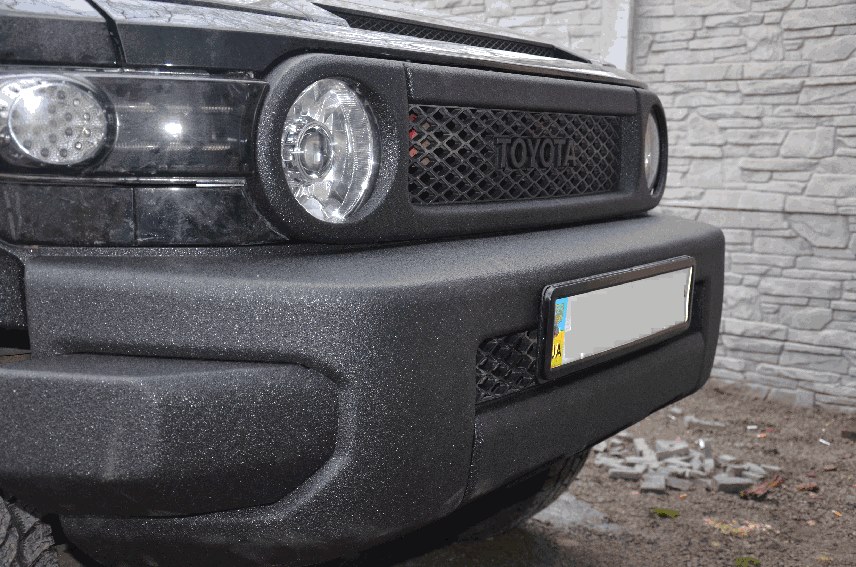 Частичное нанесение защитного покрытия Line-X на элементы кузова внедорожника Toyota FJ Cruiser. Теперь покрытие Line-X убережет бампера, ручки дверей, зеркала заднего вида, фальш-решетку радиатора, подножку и накладки дверей от ударов и царапин, столь частых при поездках по пересеченной местности, и придаст автомобилю свежий, неповторимый облик!