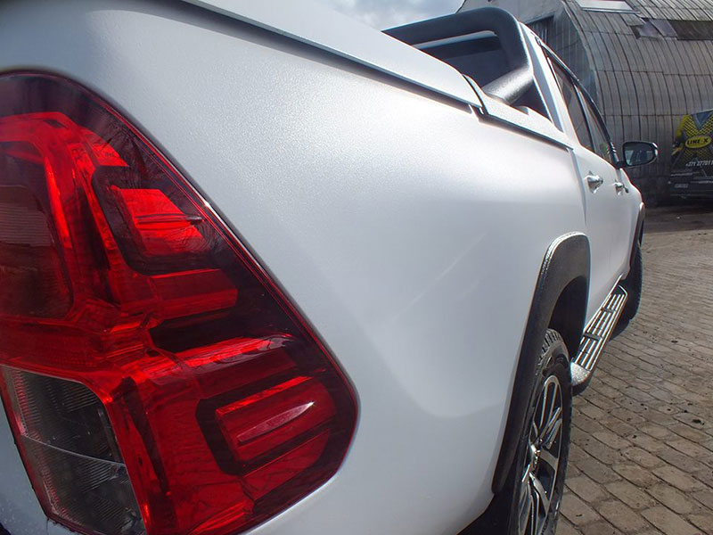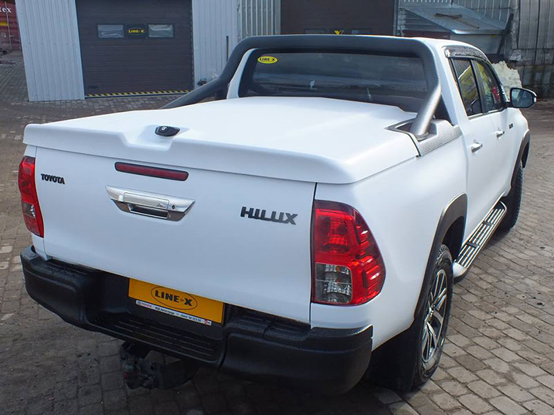 Для получения выдающегося результата, специалисты компании Line-X Baltic совместили в своей работе два типа покрытия Line-X. Основную часть кузова полноприводного пикапа Toyota Hilux окрасили покрытием Line-X ULTRA с малой шагренью белого цвета, а такие навесные элементы, как бампера, пороги, решётку радиатора, силовой каркас багажника, шильдики логотипа и подфарники – стандартным Line-X черного цвета. Получилась идеальная комбинация способная украсить и защитить любой автомобиль от механических повреждений и коррозии.