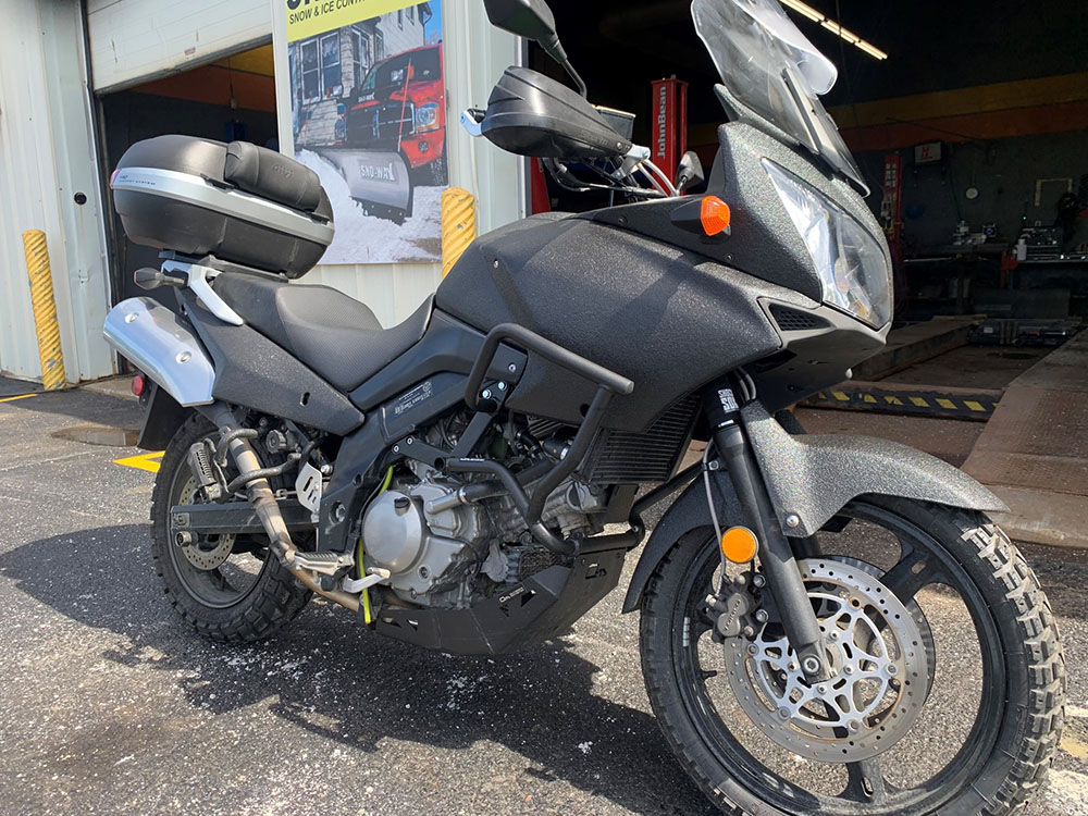 Этот мотоцикл защищен от царапин и ржавчины слоем защитного полимерного покрытия Line-X. Ездите свободно по любим типам дорог, с Line-X, камни, ветки и другой мусор — не проблема. Забудьте про страх уронить мотоцикл — Line-X и здесь прейдет на помощь. Расслабитесь и начните получать удовольствия от езды без страха повредить корпус любимого байка!