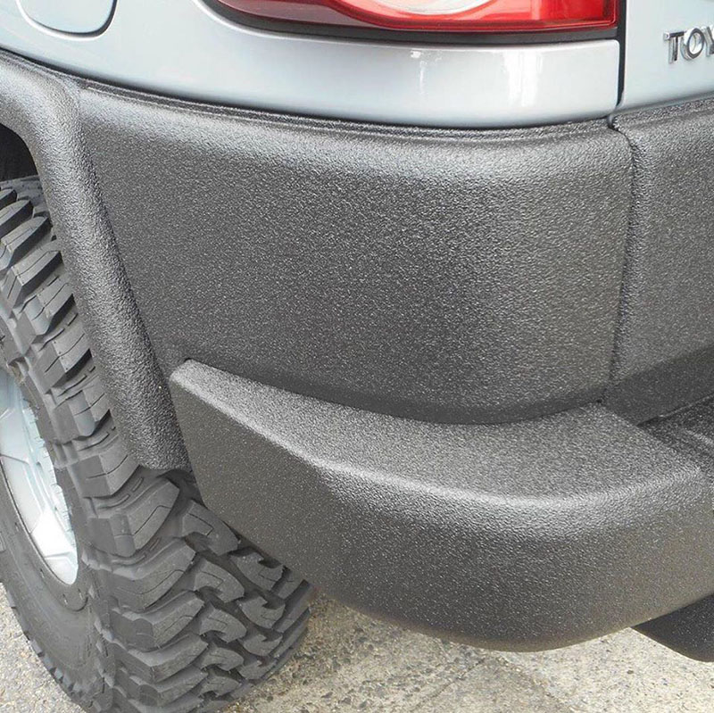 Toyota FJ Cruiser — модель с очень необычной судьбой, ставшая настоям хитом продаж. Концепт-кар, который изначально не планировался в производство, был выпушен в честь годовщины легендарного внедорожника FJ40, после демонстрации на «Североамериканском международном салоне», вызвал такую заинтересованность публики, что модель пришлось ставить на конвейер. И вот теперь один из владельцев, такой необычной машины, решил сделать ее еще более оригинальной и покрасил навесные аксессуары (бампера, расширители арок колес, накладной багажники и пороги) защитным полимерным покрытием Line-X.