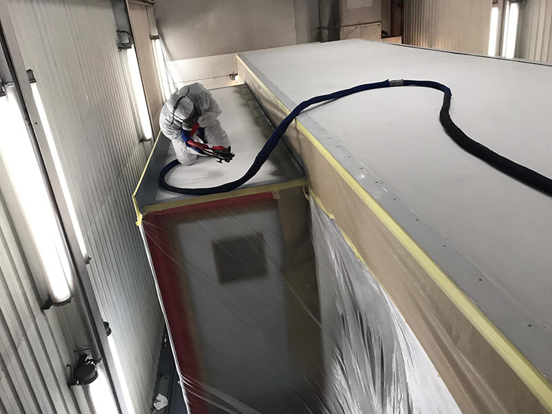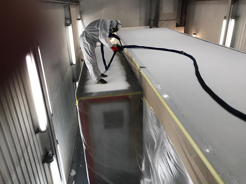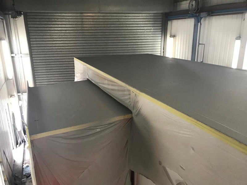 Окраска крыши трейлера полимерным покрытием Line-X гарантирует 100% гидроизоляцию и надежную защиту от механических повреждений!